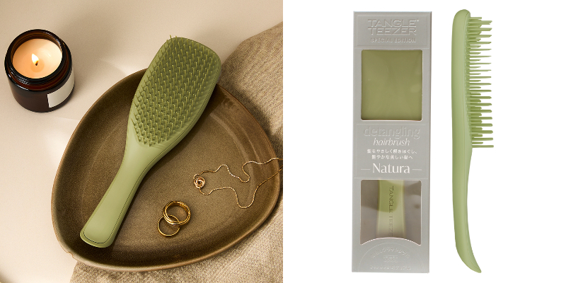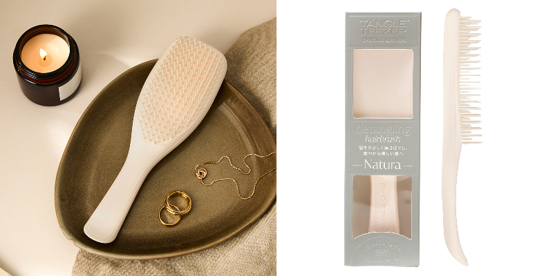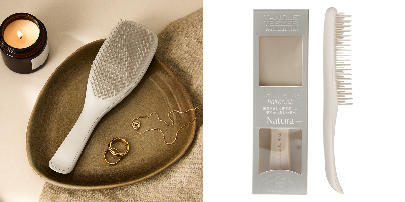「ザ・アルティメットディタングラー Natura」は、タングルティーザーの「とかすだけでさらツヤ髪へ導く」機能はそのままに、しっとりとしたマットな手触りとニュートラルな色調が、ブラッシングタイムに上質さをプラス。乾いた髪はもちろん、デリケートな濡れ髪も、毛先までやさしく解きほぐします。